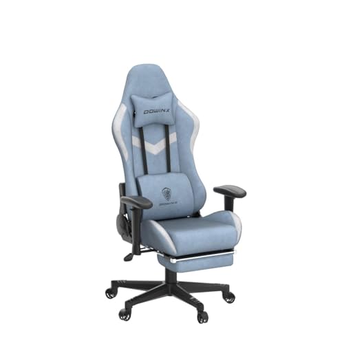 Specificaties: Dowinx Bureaustoel, gamingstoel, stof, ergonomische gamingstoel, massagestoel met voetensteun, hoofdsteun, lendenkussen, gamingstoel, draaistoel (hemelsblauw)