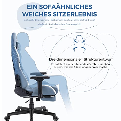 Dowinx Bureaustoel, gamingstoel, stof, ergonomische gamingstoel, massagestoel met voetensteun, hoofdsteun, lendenkussen, gamingstoel, draaistoel (hemelsblauw)