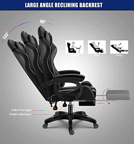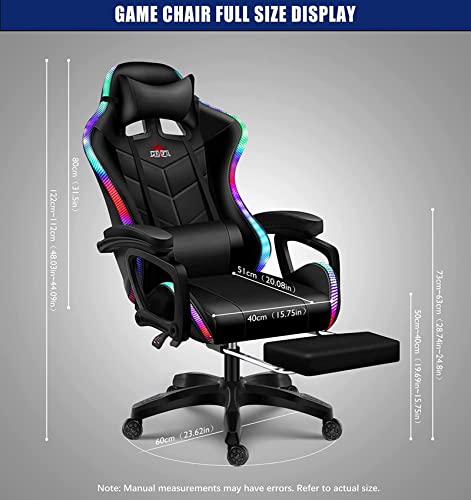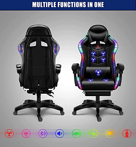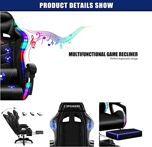 RGB-verlichting oogverblindende volwassen gamestoel: deze gamingstoel is ontworpen met knipperende RGB-lampjes aan de achterkant en randen. U kunt eenvoudig meerdere lichtmodi en helderheid aanpassen met de afstandsbediening. De gamestoel heeft dubbele professionele luidsprekers die rijke stereogeluidseffecten bieden en kan worden aangesloten op mobiele telefoons en laptops.