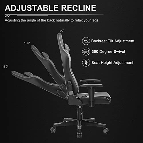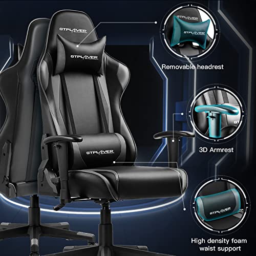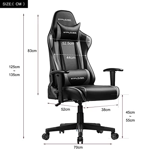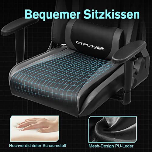 Specificaties: GTPLAYER Gaming stoel bureaustoel Ergonomische stoel met verstelbare hoofdsteun en lumbaalkussen, in hoogte verstelbaar, kantelbaar,grijs