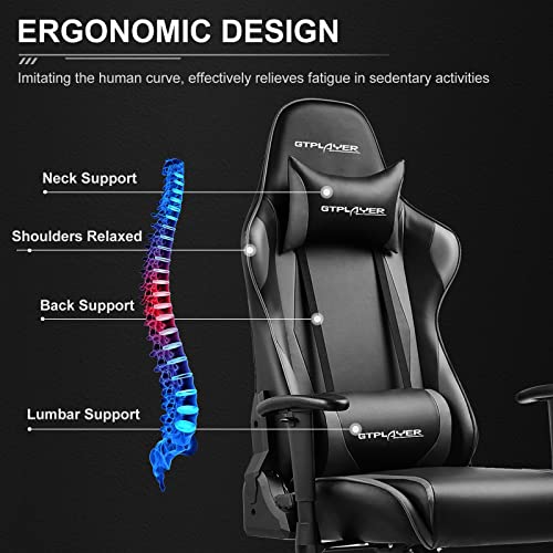 GTPLAYER Gaming stoel bureaustoel Ergonomische stoel met verstelbare hoofdsteun en lumbaalkussen, in hoogte verstelbaar, kantelbaar,grijs