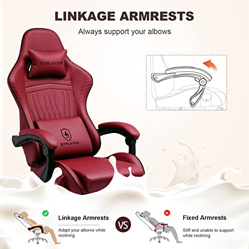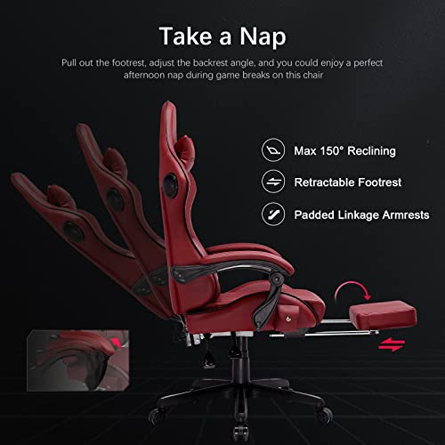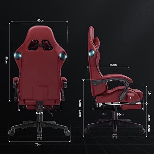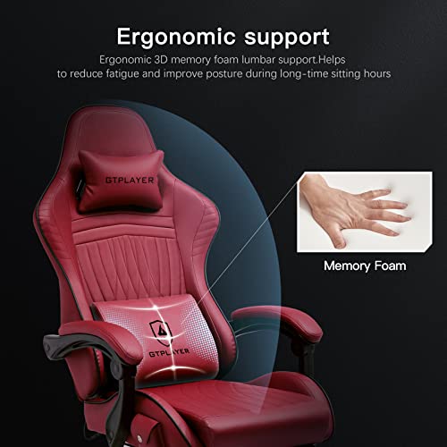 Specificaties: GTPLAYER Gaming stoel, ergonomische gamingstoel, bureaustoel, pc, gamer, racestoel met voetensteun, luidspreker, muziek, bureaustoel, belastbaar tot 150 kg, wijnrood
