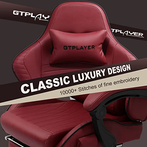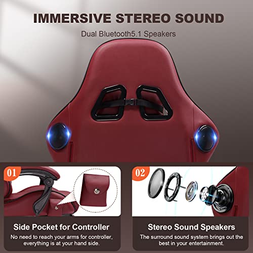 GTPLAYER Gaming stoel, ergonomische gamingstoel, bureaustoel, pc, gamer, racestoel met voetensteun, luidspreker, muziek, bureaustoel, belastbaar tot 150 kg, wijnrood