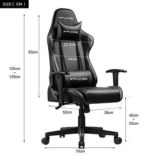 Specificaties: GTPlayer Gamingstoel, bureaustoel, ergonomische stoel, verstelbare armleuningen, stalen frame uit één stuk, instelbare kantelhoek, zwart