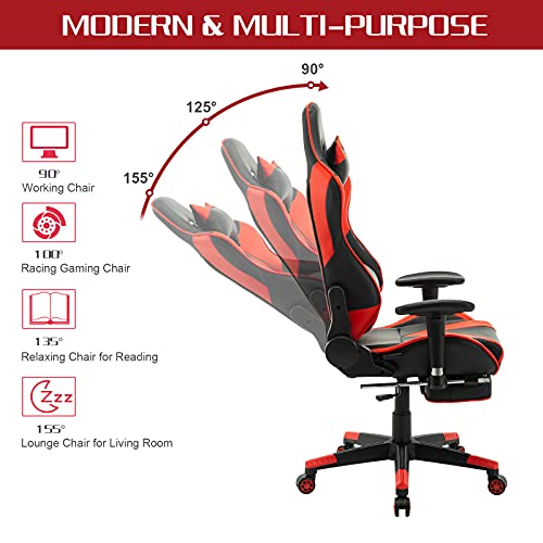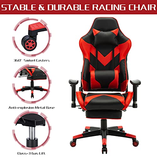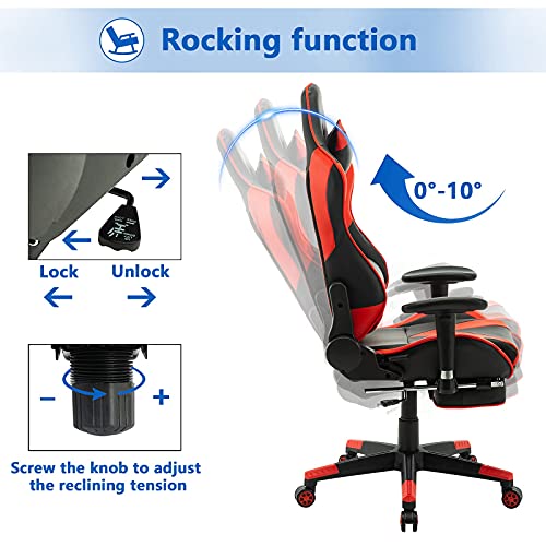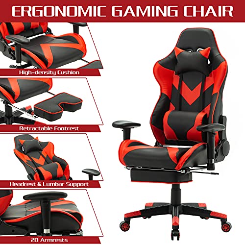 Specificaties: WOLTU BS47rt Gaming stoel Gaming fauteuil in Kunstleer,Bureaustoel met hoofdsteun en voetensteun,Rood Zwart