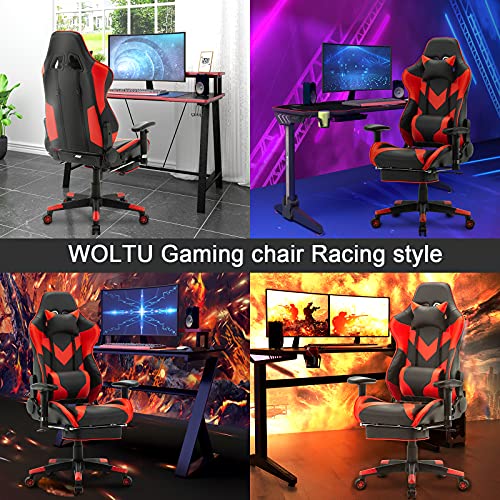 WOLTU BS47rt Gaming stoel Gaming fauteuil in Kunstleer,Bureaustoel met hoofdsteun en voetensteun,Rood Zwart